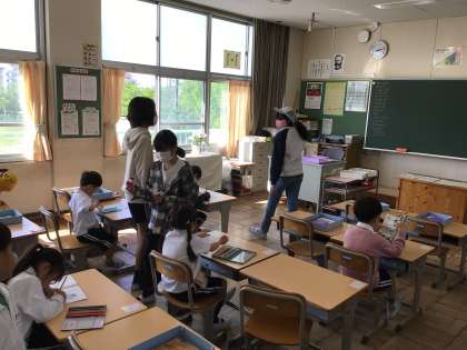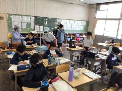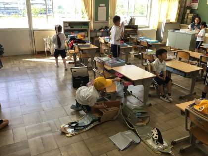 気持ちのよく晴れた朝、元気よく登校してきました。朝の支度をてきぱき進めていました。