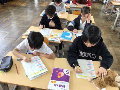 4/25 5年算数1 公開日 2025/04/25 更新日 2025/04/25 各学年から 5年算数では、現在体積の単元を学習しています。1組も2組もL字型の平面図形の面積の求め方を復習をしていました。既習事項を用いて今日の課題に個人で取り組みました。