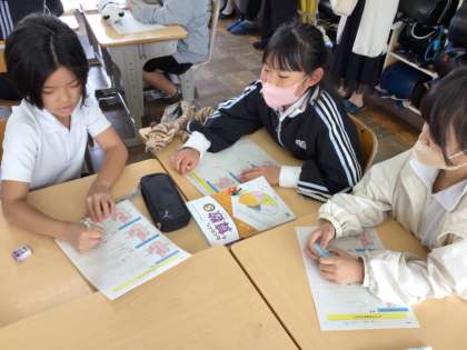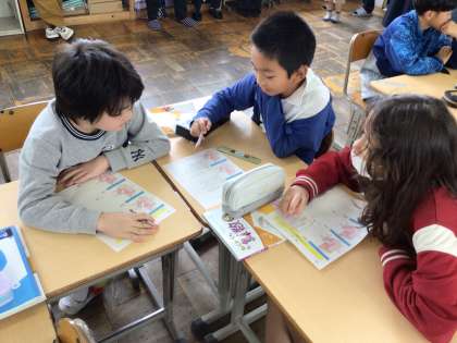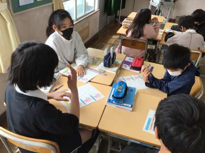 4/25 5年算数2 公開日 2025/04/25 更新日 2025/04/25 各学年から L字型の立体の体積の求め方を個人で取り組んでいましたが、難しくて悩んでいる様子が見られました。班で話し合って解き方を共有していました。