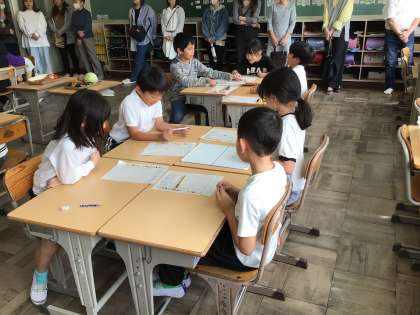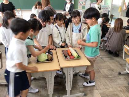 水に浮く野菜と沈む野菜について考えました。グループで「すてきトーク」で話し合いました。友達の話を目を見て聞いたり、そう考えた理由を話したりすることができました。