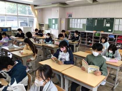 4/28 かがやき1 公開日 2025/04/28 更新日 2025/04/28 各学年から 8時25分までに水曜日の連絡を記入したりするなど準備を済ませ、チャイムで気持ちを切り替えて静かに読書をしていました。
