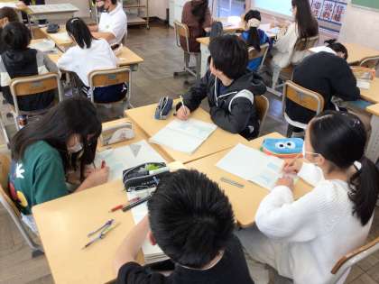 4/30 6年算数 公開日 2025/04/30 更新日 2025/04/30 各学年から 6年算数では、対称な図形について学んでいます。「点対称な図形のかき方を考えよう」というめあてで進めていました。点対称の図形の特徴を復習しながら、どのようにかいていけばよいかを1つ1つ確認していました。