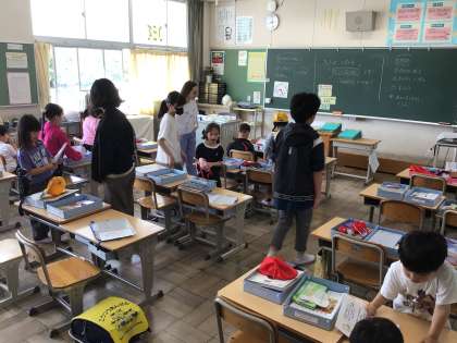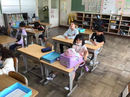 5月初日は気持ちのよい天気となりました。いつも元気よく登校し、教室は明るい声が響いています。級友や先生と楽しく会話をしたり、朝の支度をしたりしていました。