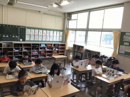 どの学級もよい姿勢で本を読んでいます。5月初日も落ち着いた雰囲気でスタートができました。