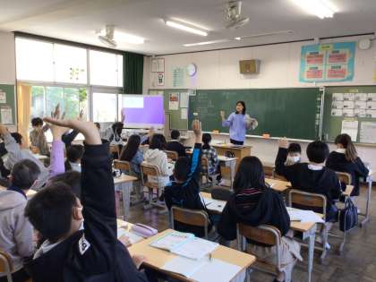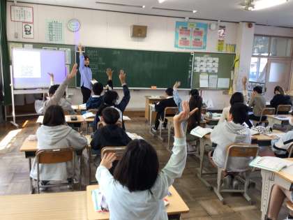 5/1 6年算数 公開日 2025/05/01 更新日 2025/05/01 各学年から 6年算数では、文字の式の単元に入りました。今までは○や△などの記号を使っていましたが、xや yなどの文字を使って数量の関係を式で表すというところの最初の部分です。先生の発問に対して、たくさんの手が挙がっていました。