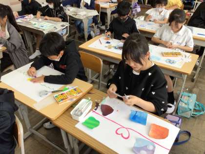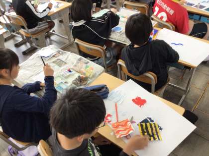5/1 5年図工 公開日 2025/05/01 更新日 2025/05/01 各学年から 5年図工では、心のもようの作品づくりが始まりました。色や形から気持ちを見つけ、自分の「心」を表現をしていくようです。画用紙に色やレイアウトを考えながら、黙々と作品をつくっていました。