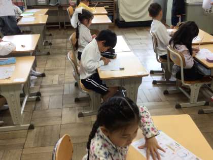 5/2 1年生国語2 公開日 2025/05/02 更新日 2025/05/02 各学年から 1年生国語のひらがなの学習では「う」の文字の練習をしました。「う」つく言葉を考え、プリントにひらがなを書きました。