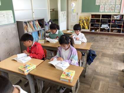 国語辞典の使い方の学習です。国語辞典の言葉の並び方を考えながら調べていきます。今日は「あさ」「いし」などの言葉を調べました。言葉を見つけると「あった」とうれしそうな声が響きました。