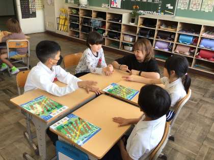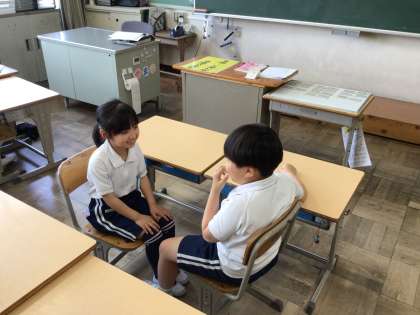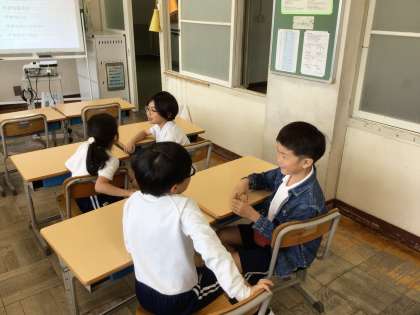 5/8 えがおタイム2 公開日 2025/05/08 更新日 2025/05/08 各学年から 「しつもんじゃんけん」はペアでじゃんけんをしながら、互いに質問し合うものです。自分のことをはっきり伝えると同時に、相手の話を顔を見て聴くことができることで温かい雰囲気でコミュニケーションができます。今日のねらいは達成できたかな?