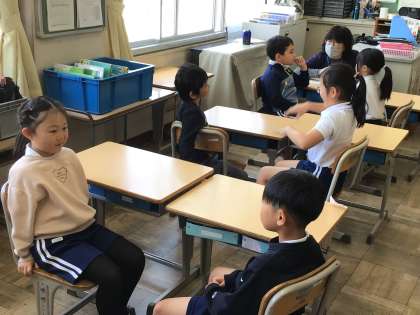 5/8 えがおタイム3 公開日 2025/05/08 更新日 2025/05/08 各学年から 質問項目は低学年、中学年、高学年で若干異なりますが、じゃんけんをしてテンポよく会話をしていきます。人の話を頷きながら聴くことができていた人も増えてきました。