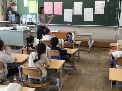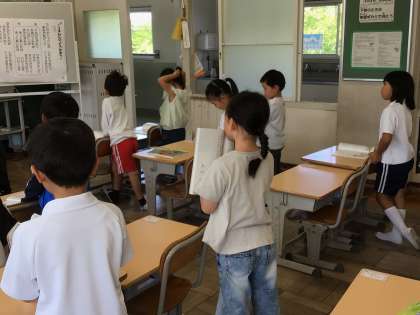 1年生国語「あめですよ」の学習では、リズムよく読んだり、情景を思い浮かべながら読んだりしています。主人公が、あめが好きか、嫌いかを考えながら読みました。