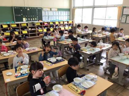5/9 楽しい給食 公開日 2025/05/09 更新日 2025/05/09 特別活動 今日の献立はごはん、牛乳、じゃがいものそぼろ煮、きびなごのから揚げ、おひたしです。 きびなごという小さな魚を丸ごとから揚げにしています。骨まで食べられるので、カルシウムたっぷりの一品です。 1年生のみなさんも、よく噛んで食べることができていました。