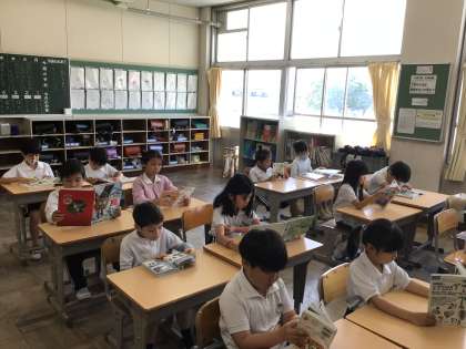 今日も元気よく登校してきました。朝の支度をすばやく行い、かがやきの時間になると静かに読書が始まりました。時間を見て行動ができるのは大変いいことですね。
