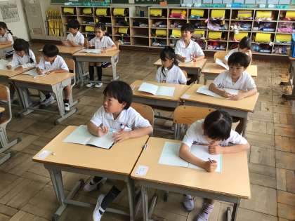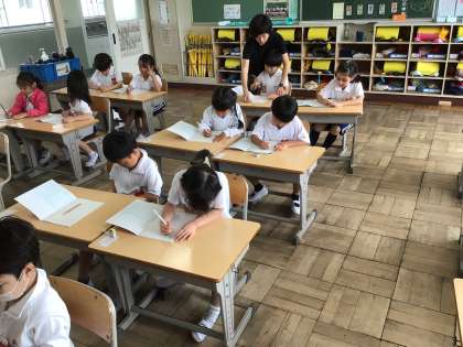 ひらがなの練習をしました。「へい」という言葉が出てきたときに「へいって何?」という質問が出ました。最近、見かけることが少なくなった地域もあるようです。ひらがなの勉強をしながら様々な言葉も覚えられますね。