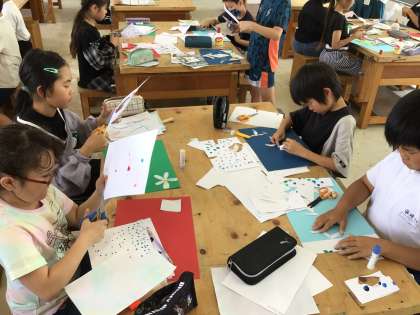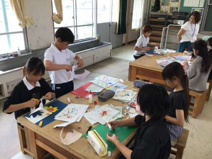 5/14 4年図工 公開日 2025/05/14 更新日 2025/05/14 各学年から 4年図工では、絵の具でゆめもようという作品をつくっていきます。前時までにつくった模様を切ったり貼ったりして1つの作品にしていくようです。先生の説明の後,さっそく自分の思うような形で切り、配置を考えながら作品づくりに取りかかっていました。
