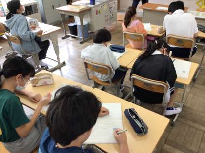 5/16 6年算数2 公開日 2025/05/16 更新日 2025/05/16 各学年から 6年算数では、文字と式の単元を学習しています。「小数のときの問題を解こう」というめあてで学習を進めていました。集中して問題を解く姿がいいですね。