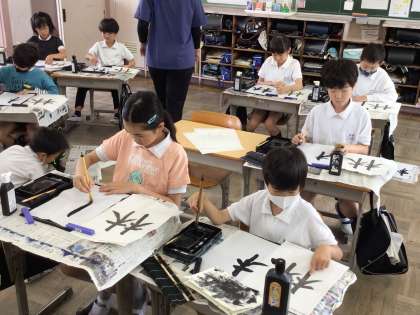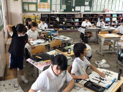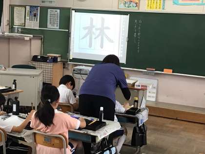 5/16 4年書写 公開日 2025/05/16 更新日 2025/05/16 各学年から 4年書写では、「右と左の部分のかたちを意識して書こう」というめあてで進めていました。「林」という字は「木」が2つですが、とめやはらいなど注意しないといけません。お手本をよく見て書き上げていました。