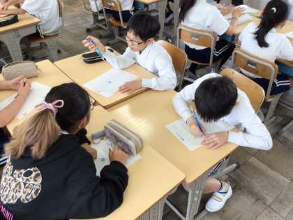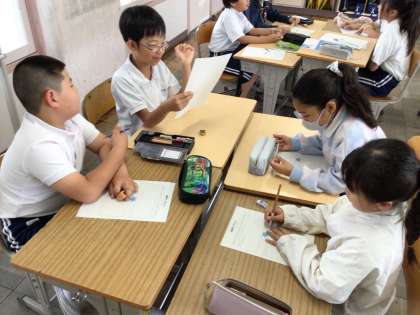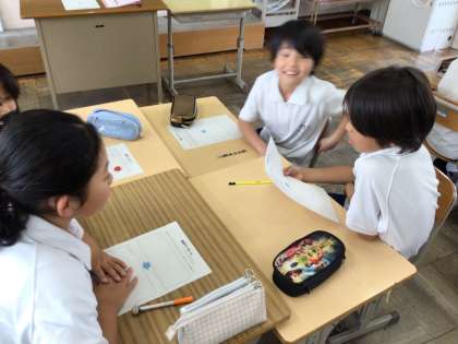 4年総合では、岩本川について考えようというテーマで学習を進めています。今日は班で岩本川について知っていることや知りたいことについて話し合っていました。
