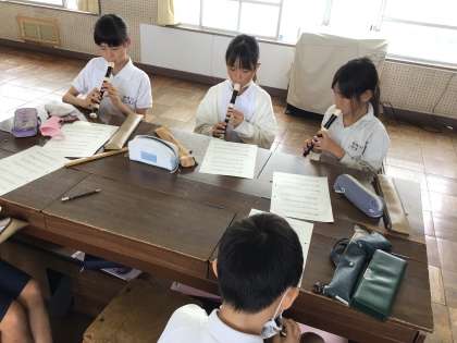 5/19 4年音楽 公開日 2025/05/19 更新日 2025/05/19 各学年から 4年音楽では、「小さな世界」を歌った後、「さくら さくら」の歌のテストを行いました。並行して音楽ワークも進めて付点2分音符などの音楽用語を復習しました。リコーダーでは、「聖者の行進」以外にも「さよなら」という低い音の出てくる曲を練習しました。