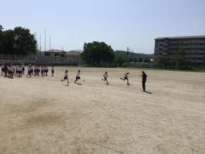 5/20 5年体育 公開日 2025/05/20 更新日 2025/05/20 各学年から 5年体育では、運動所で陸上運動を行っていました。どのように走ると速く走ることができるのか、コツを教えてもらった後実際に走っていました。