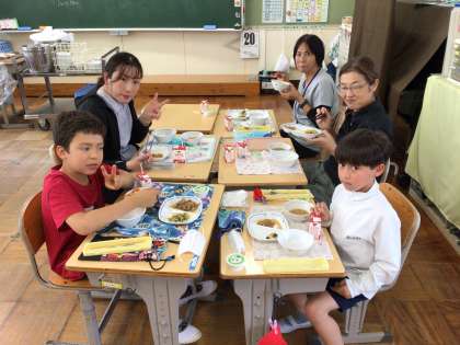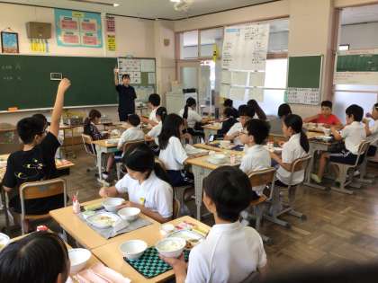 5/20 楽しい給食 公開日 2025/05/20 更新日 2025/05/20 特別活動 今日の献立はごはん、牛乳、とよたひまわりポークのしょうが炒め、アーモンドあえ、みそ汁、抹茶水ようかんです。 今日は豊田ブランドの日献立です。豊田市でとれた食べ物がたくさん使われています。 デザートの水ようかんも味わって食べていました。