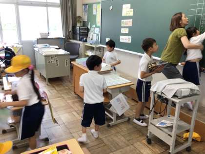 蒸し暑い朝となりましたが、元気よく登校してきました。宿題を決められたところに提出したり、翌日の連絡を書いたりしていました。1年生も自分でできることがひごとに増えてきていますね。