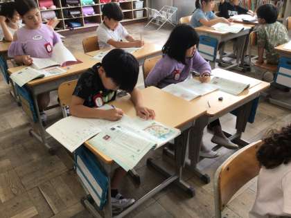 5/22 3年生国語 公開日 2025/05/22 更新日 2025/05/22 各学年から 習った漢字を使って文を作る学習をしました。教科書の絵を見ながら「もう5個もできたよ」「僕は7個」などと意欲的に取り組んでいました。これからも習った漢字をどんどん使えるといいですね。