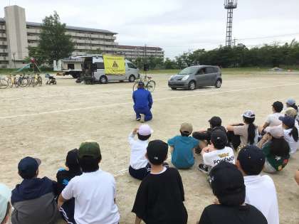5/23 4・6年生スケアードストレイト交通安全教室1 公開日 2025/05/23 更新日 2025/05/23 各学年から 運動場で交通安全教室を行いました。事故が多い自動車の速度は40〜50kmだそうです。その速度で走ってきた自動車が自転車にぶつかるとどうなるのかを目の前で見せていただきました。想像以上の衝撃は事故の恐ろしさを物語っていました。