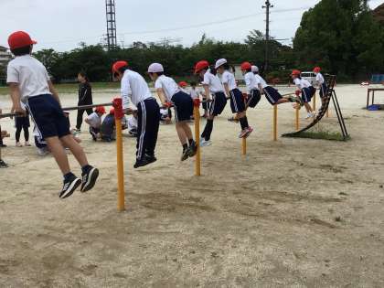 5/26 2年生体育 公開日 2025/05/26 更新日 2025/05/26 各学年から 2年生体育では「鉄棒」の学習をしています。鉄棒の上で腕を伸ばしてとまったり、足を揺らして勢いをつけておりたり、いろいろな技の練習をしました。