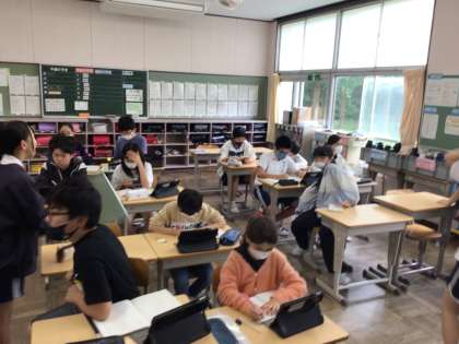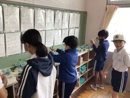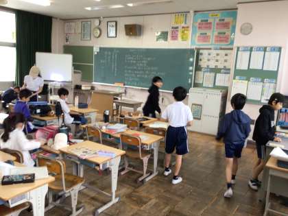 教室では元気な声が聞こえてきます。友達と談笑しながらも、朝の支度を進めていました。