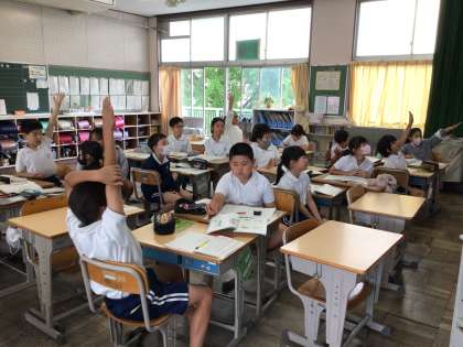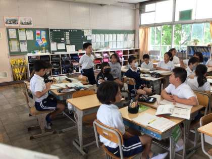 『わたしのクラスの「生き物図かん」』の学習です。パンダについて書かれた例文のいいところとそうではないところを話し合うことで、分かりやすい図鑑を作るための工夫について考えました。