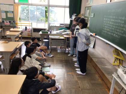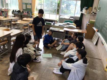 6年総合では、今週木曜日に行われるやまびこ遊びに向けた準備をしていました。やまびこ遊びの説明が下学年の子たちにわかりやすいかなど、互いに見合って意見を伝えながら練習をしていました。