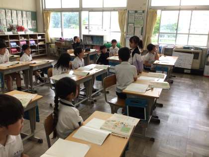 教科書のキャラクター2人の会話を読んで、伝えたいことの中心について話し合いました。自分で考えた後に隣の席の友達と考えを伝え合ったことで、自信をもってみんなに発表することができました。