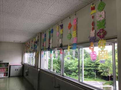 5/27 1年生図工 公開日 2025/05/27 更新日 2025/05/27 各学年から 1年生は図工で「ちょきちょきかざり」を作りました。1年生の教室前廊下に飾ってあります。風に揺れて、涼しげで綺麗です。