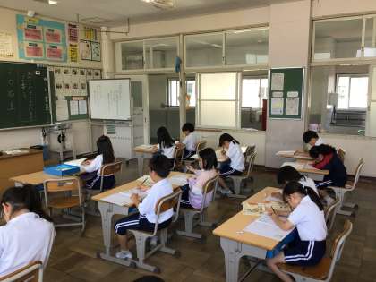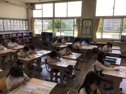 5/28 2年生書写 公開日 2025/05/28 更新日 2025/05/28 各学年から 2年生書写では、画がつくか、つかないか、交わるかを考えながら丁寧に書きました。「刀」「力」、「石」「右」、「土」「上」等の漢字を書きました。