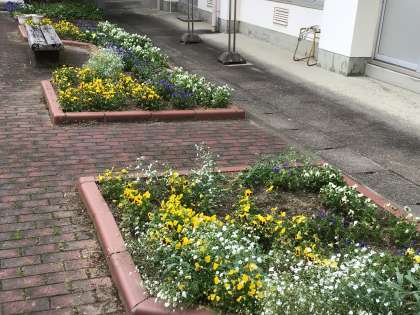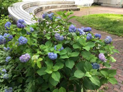 雨の日が増えてきて、6月が近づいてきています。中庭のアジサイが咲き始めました。また、中庭には公務手さんが日々手入れしてくださっている花壇があり、パンジーなどの花がとてもきれいです。最後の写真は体育館前にあるビワです。まだ熟してはいませんが、少しずつ橙色になっていきます。たくさんの植物を見ることができるので、観察してみましょう。