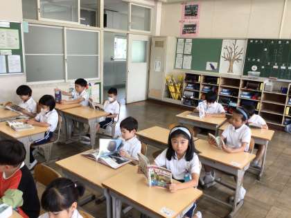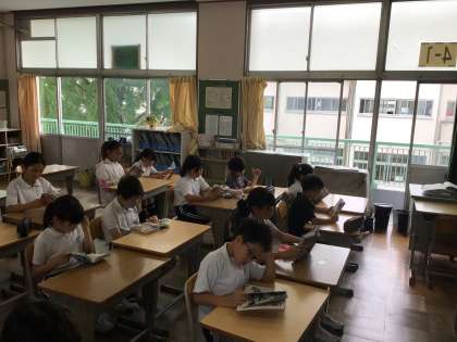 チャイムで気持ちを切り替えて静かに読書ができています。今日も落ち着いた雰囲気で一日がスタートできました。