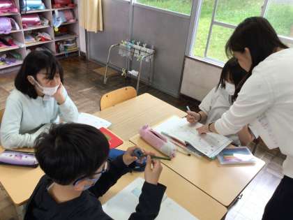 5/29 6年算数2 公開日 2025/05/29 更新日 2025/05/29 各学年から 6年算数では、分数✖️分数の計算の仕方について考える授業でした。班で計算の仕方を考え、説明ができるように話し合っていました。分数の意味(3分の2が3つに分けたときの2つ分)がわかっているか改めて問われるところです。今後も考え方を大切にしていきたいですね。