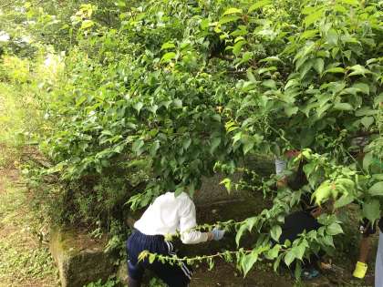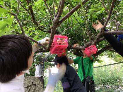 5/29 7・8組生単1 公開日 2025/05/29 更新日 2025/05/29 各学年から 7・8組生単では、運動場西側ウサギ小屋裏にある梅の実の収穫をしていました。毎年収穫をして梅ジュースをつくっています。子どもたちは今日の収穫を大変楽しみにしていたので、大喜びでした。