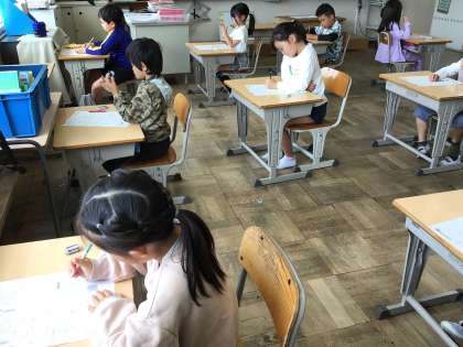2年生算数「たし算、ひき算の筆算」のテストをしました。みんな真剣に問題を解くことができています。時間いっぱい考えて書きました。