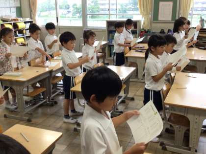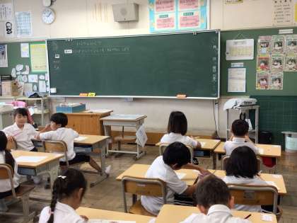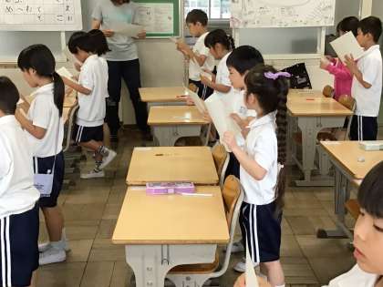 1年生算数「いくつといくつ」の学習で、今日は、10がいくつといくつに分けられるかを、友だちと声を合わせて言いました。