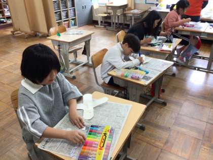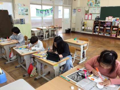 6/3 8組図工 公開日 2025/06/03 更新日 2025/06/03 各学年から 8組図工では、牛乳パックとペットボトルのフタをつかって、「クルクルまわるコマ」をつくりました。いろいろな絵を描いたり、色を塗ったりして完成させました。