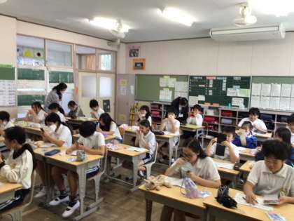 6/4 6年ライオンはみがき大会1 公開日 2025/06/04 更新日 2025/06/04 各学年から 今年もライオン全国小学生はみがき大会に参加しました。3限に6年1組、4限に6年2組で実施しました。動画を見ながら、配付された冊子に沿って歯みがきのの重要性について学びました。