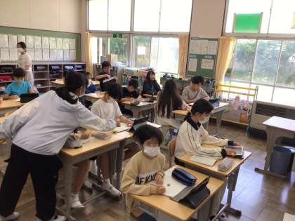 6/5 朝のひととき 公開日 2025/06/05 更新日 2025/06/05 各学年から 今日も元気よく登校してきました。翌日の連絡を記入したり、授業の準備をしたりしていました。4年生は岩本川に出かけるので、嬉しそうな表情でいっぱいでした。