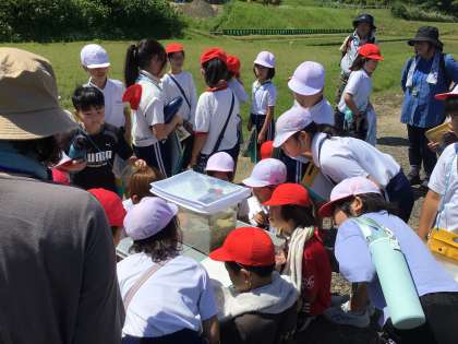 6/5 4年総合5 公開日 2025/06/05 更新日 2025/06/05 各学年から 岩本川探検を終えて、岩本川にいる生き物を観察したり、岩本川創遊会と矢作川研究所の方に探検をして気になったことを質問したりしました。1・2限の活動でしたが、ボランティアの方々にも支えられて無事活動を終えることができました。