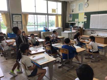 2年生算数では、教科書にある小さな星がいくつあるかを考えました。数を予想してから、どのように数えると早く、正確に数えることができるか学習しました。