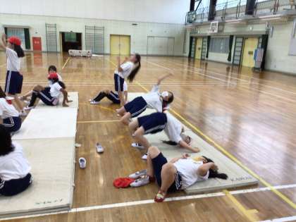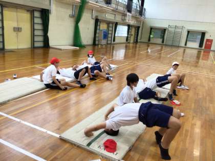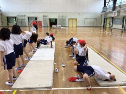 6/9 6年体育1 公開日 2025/06/09 更新日 2025/06/09 各学年から 6年体育では、体育館でマット運動を行っています。マット運動を始めるにあたり、基本的な技を全員で練習してみました。器械運動は柔軟性が重要になるので、ストレッチを含め自宅でも体を動かしてみてください。