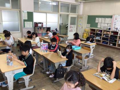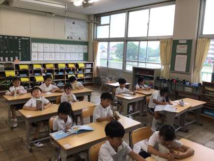 朝の支度を済ませ、チャイムで気持ちを切り替えて読書が始まりました。姿勢よく本を読んでいます。毎日短時間ではありますが、活字にふれることはすごく大切だと思います。