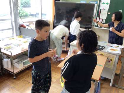 6/11 7・8組外国語2 公開日 2025/06/11 更新日 2025/06/11 各学年から 7・8組外国語の様子です。好きな食べ物を英語で何というか当てたり、英語のカルタをしたりしてとても楽しく学ぶことができました。