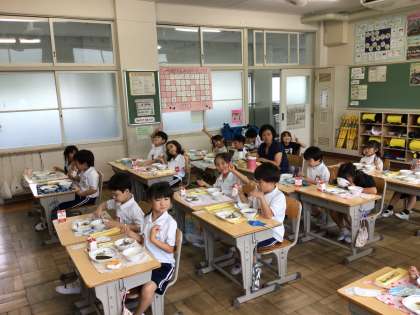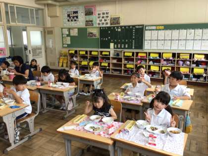 今日の献立はごはん、牛乳、いわしのしょうが煮、ひじきサラダ、豚汁です。